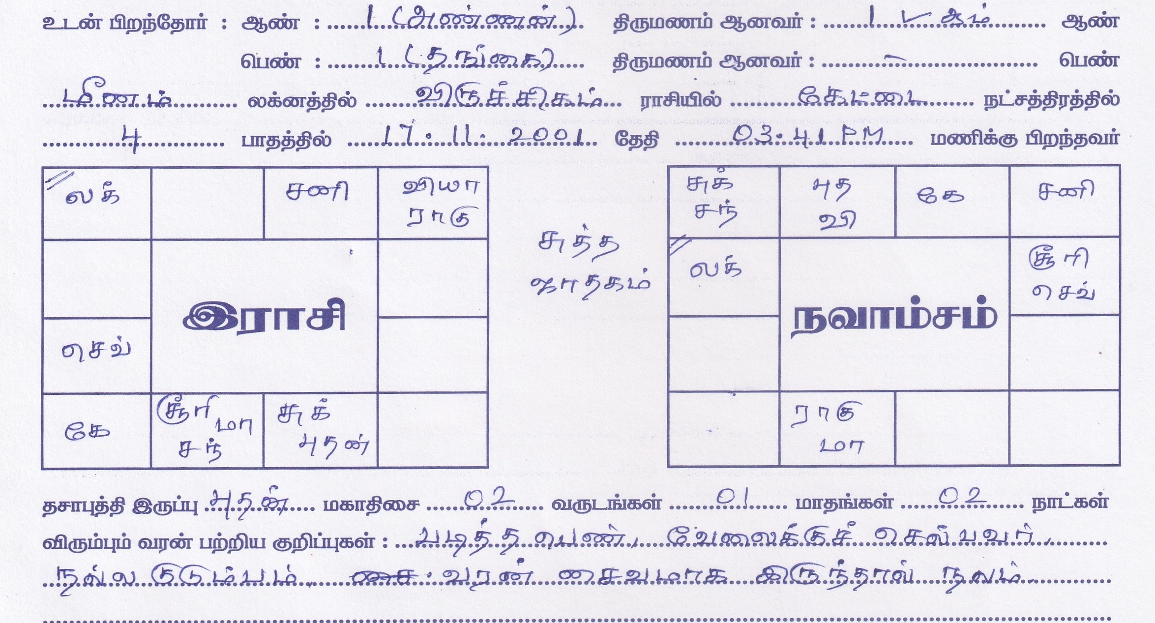 | Residing City | :VILANGURICHI (PO), COIMBATORE |