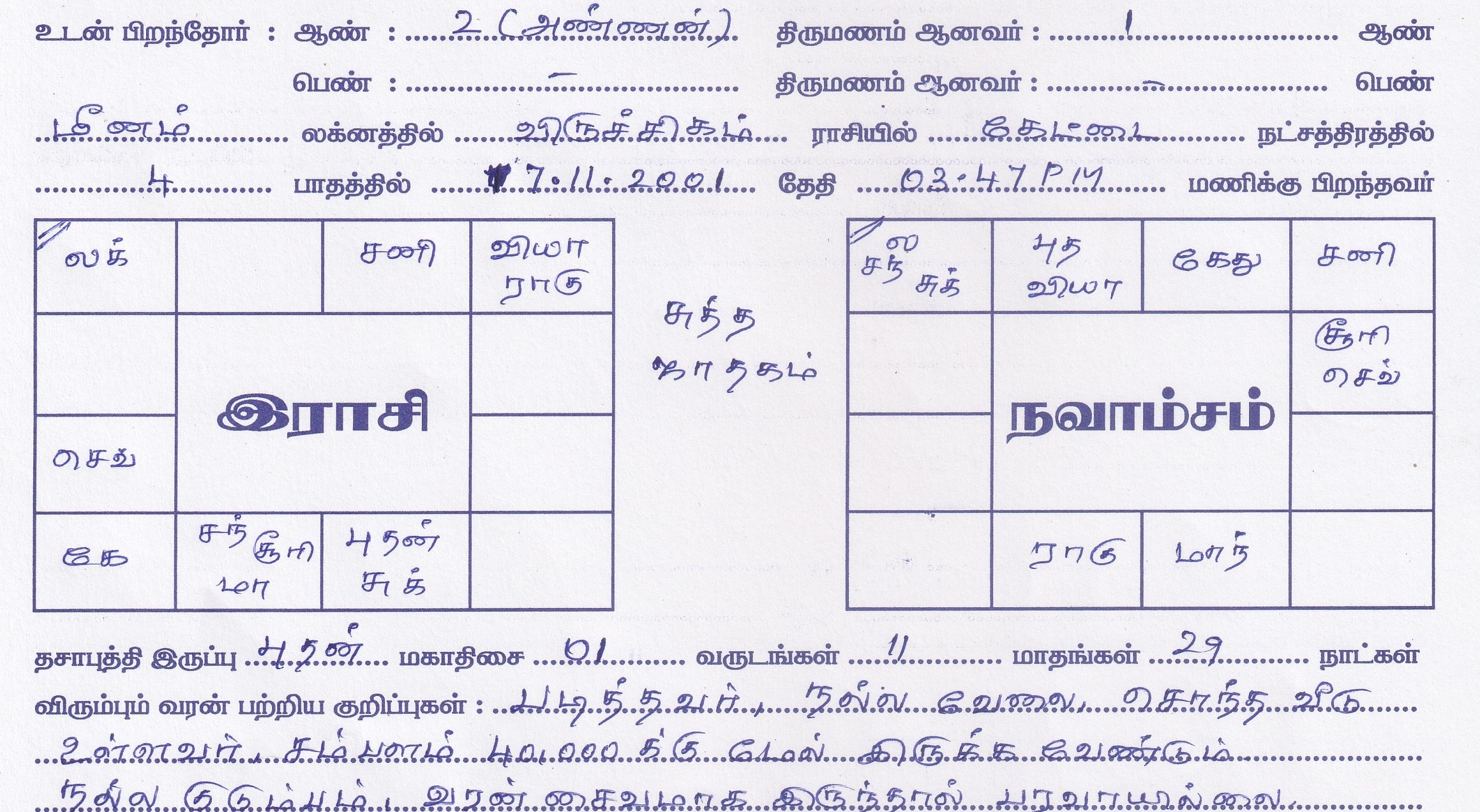 | Residing City | :VILANGURICHI (PO), COIMBATORE |
