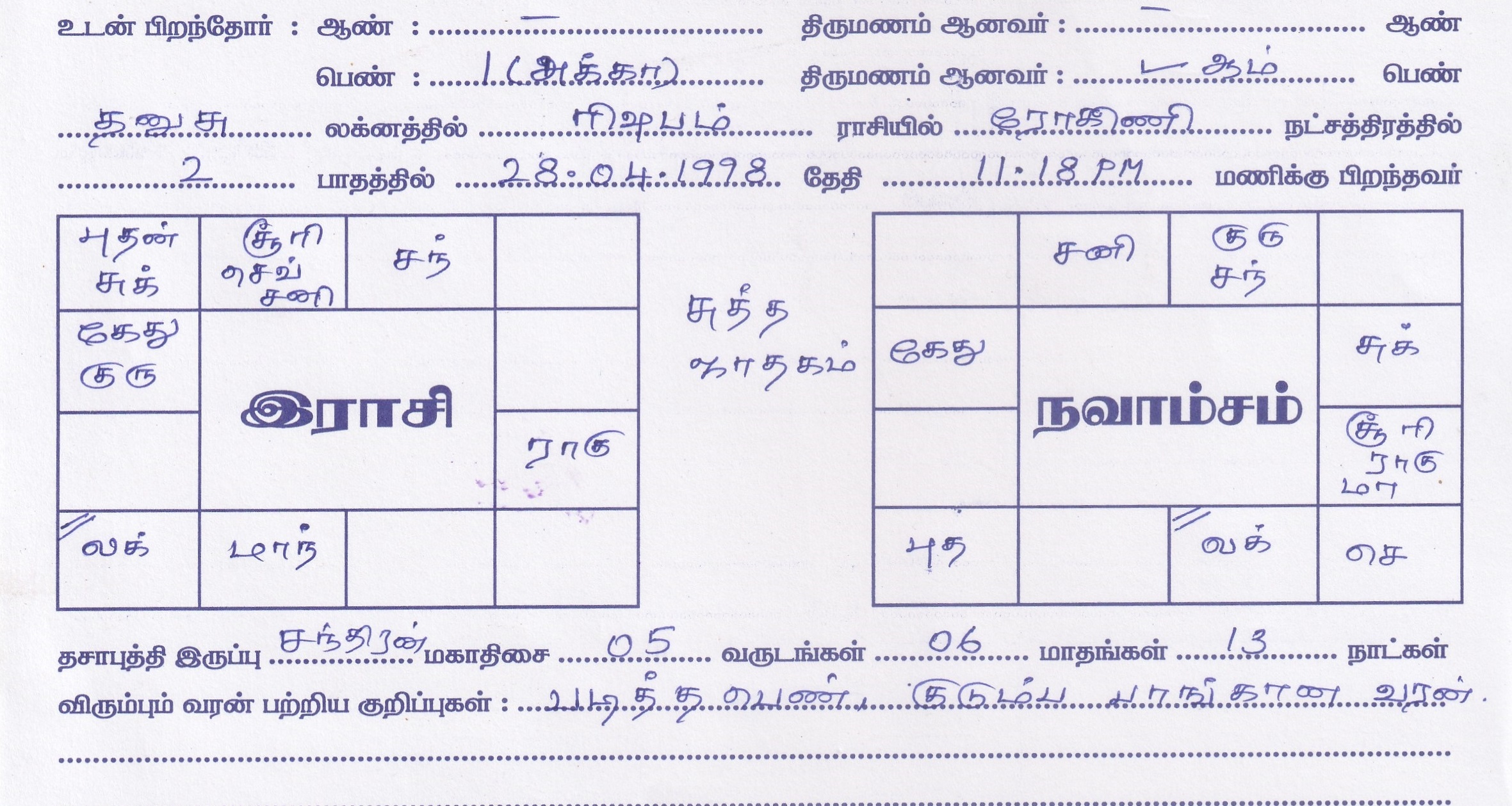 | Residing City | :VILANGURICHI,COIMBATORE |