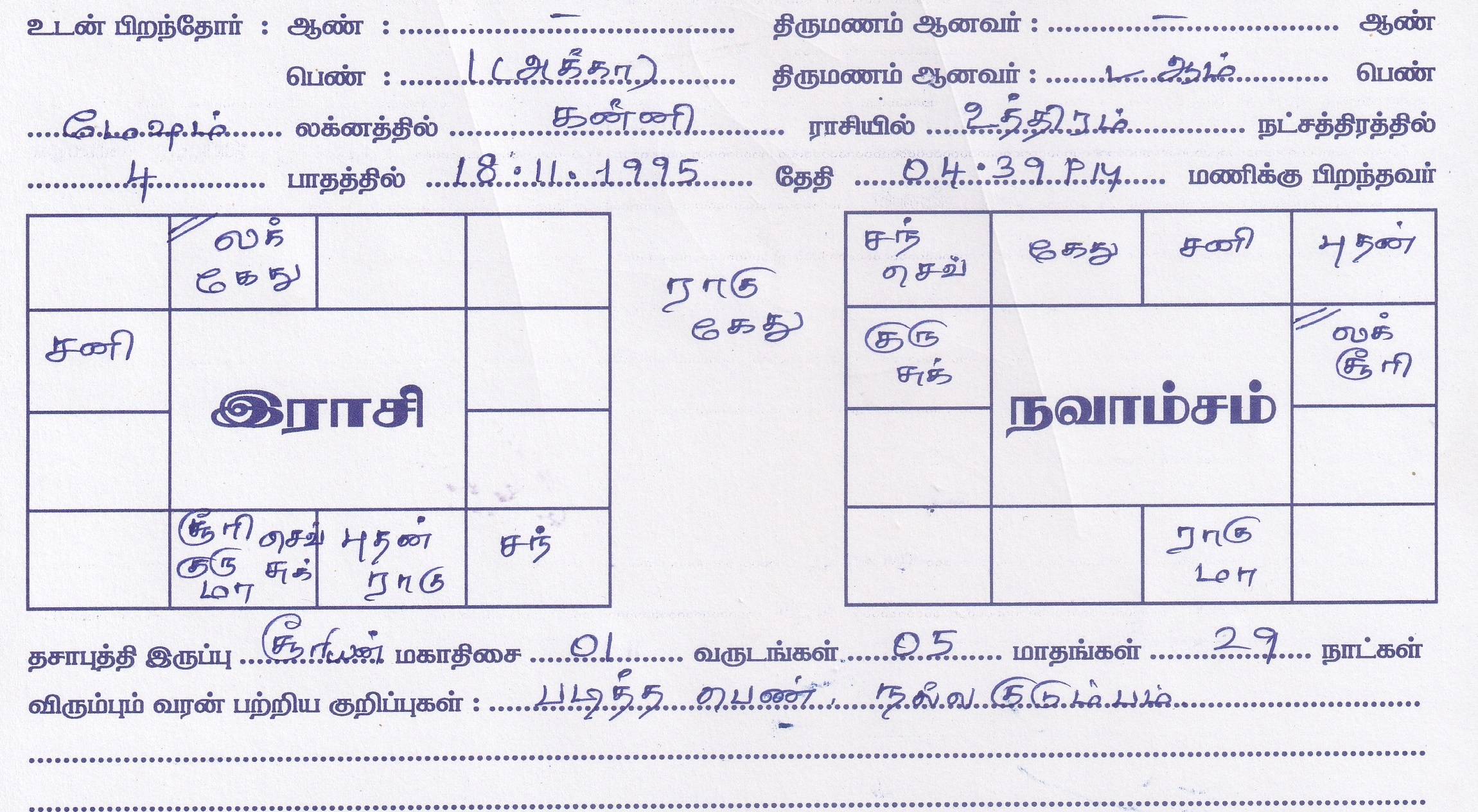 | No of Elder Sisters | : 1 |