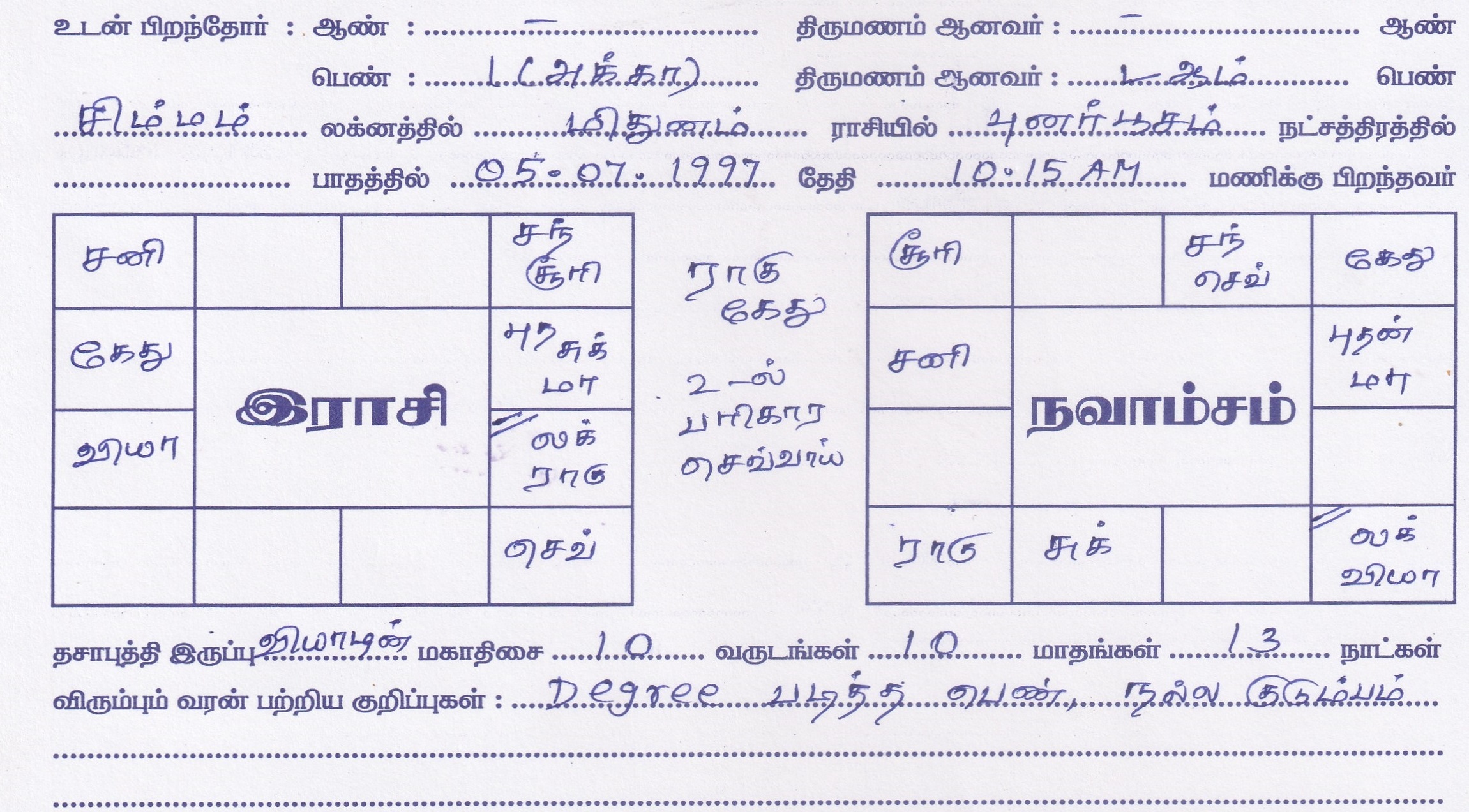 | Residing City | :VARADHA IYANGARPALAYAM,COIMBATORE |
