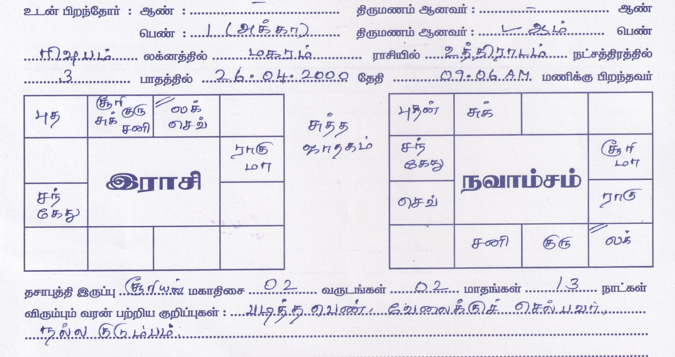 | No of Elder Sisters | : 1 |