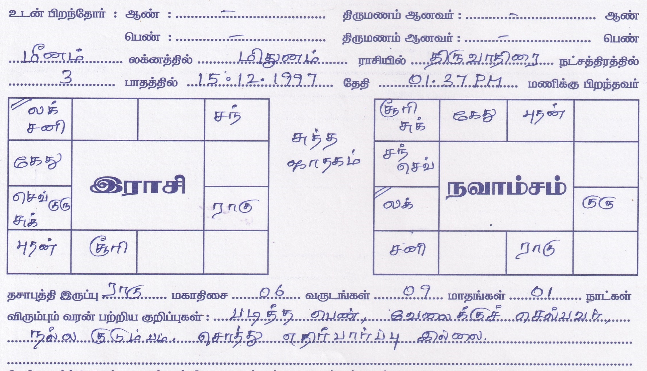 | Sub Caste | :NIL |