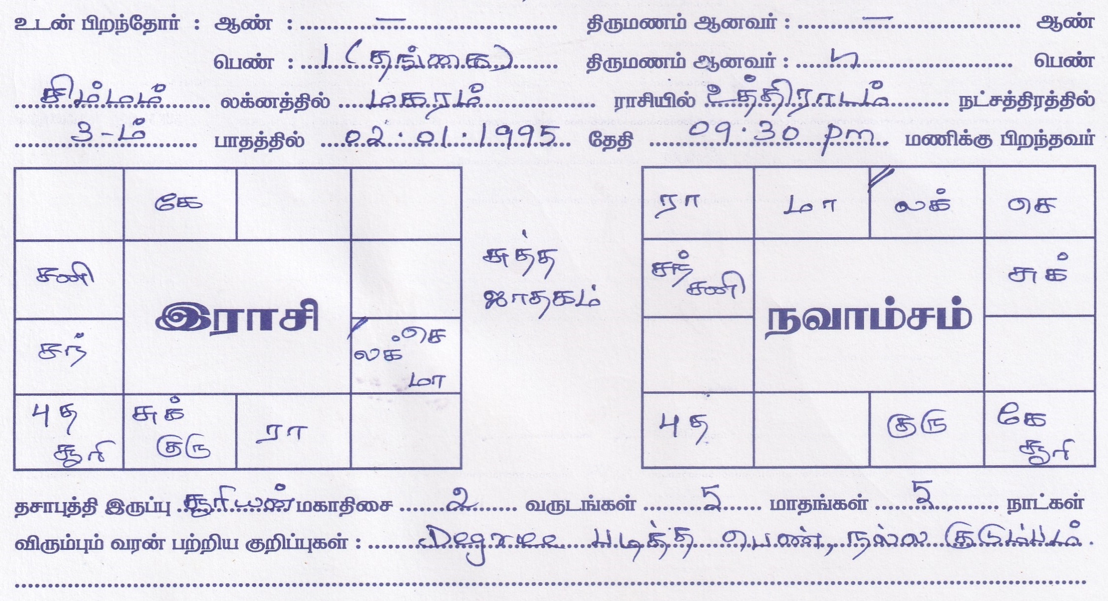 | Mother Tongue | : Tamil |