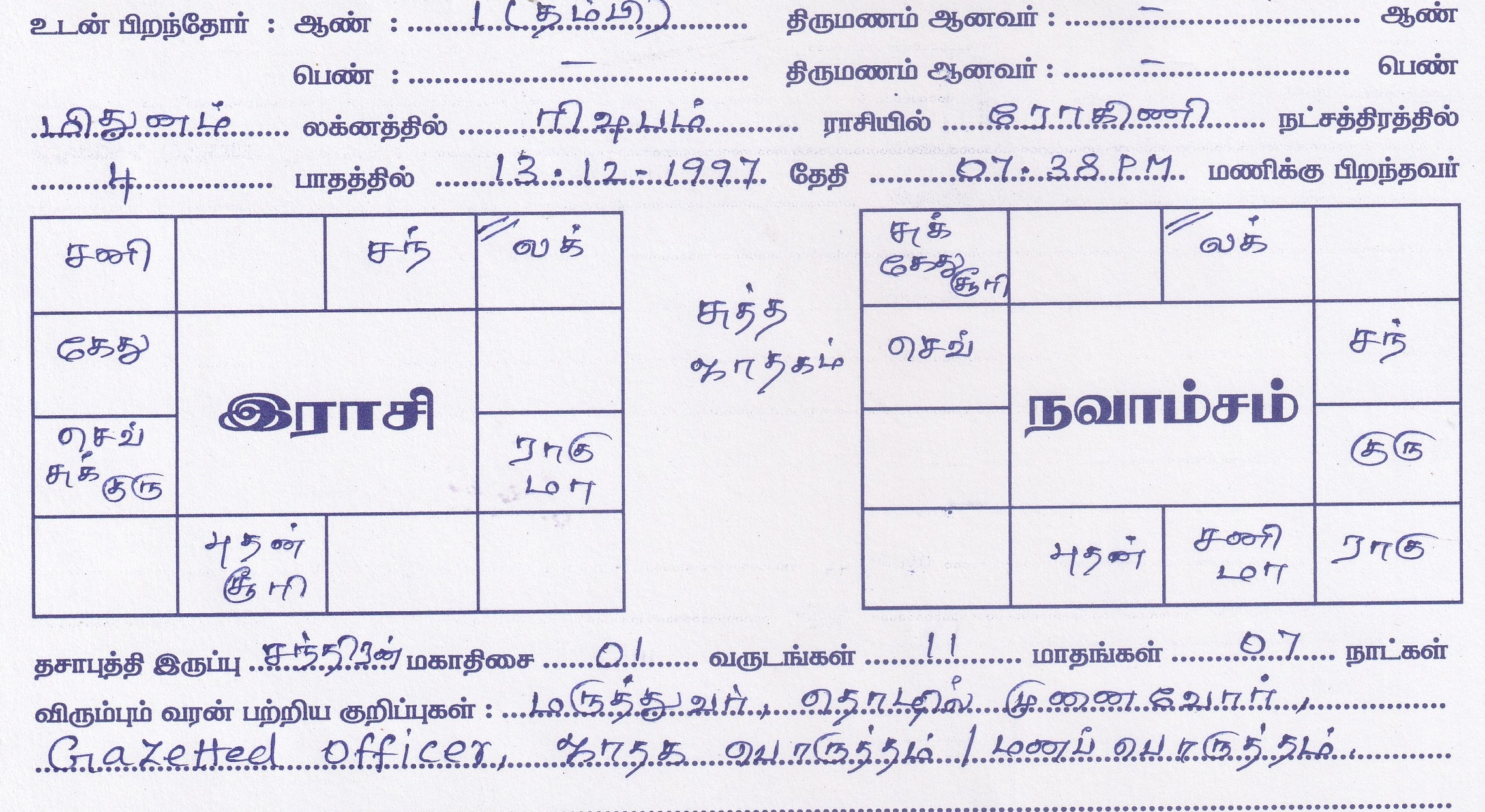 | Sub Caste | :NIL |