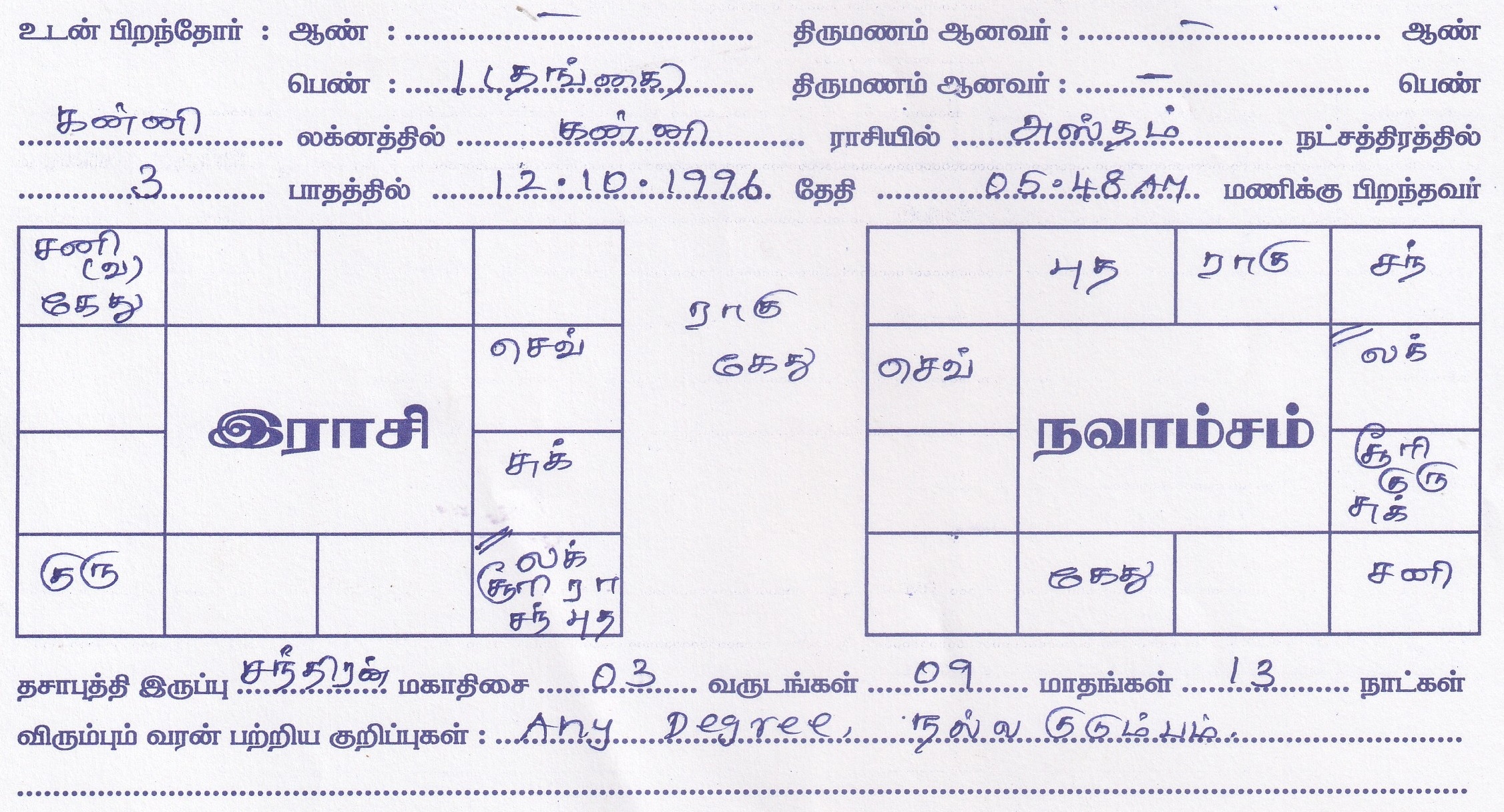 | Sub Caste | :NIL |