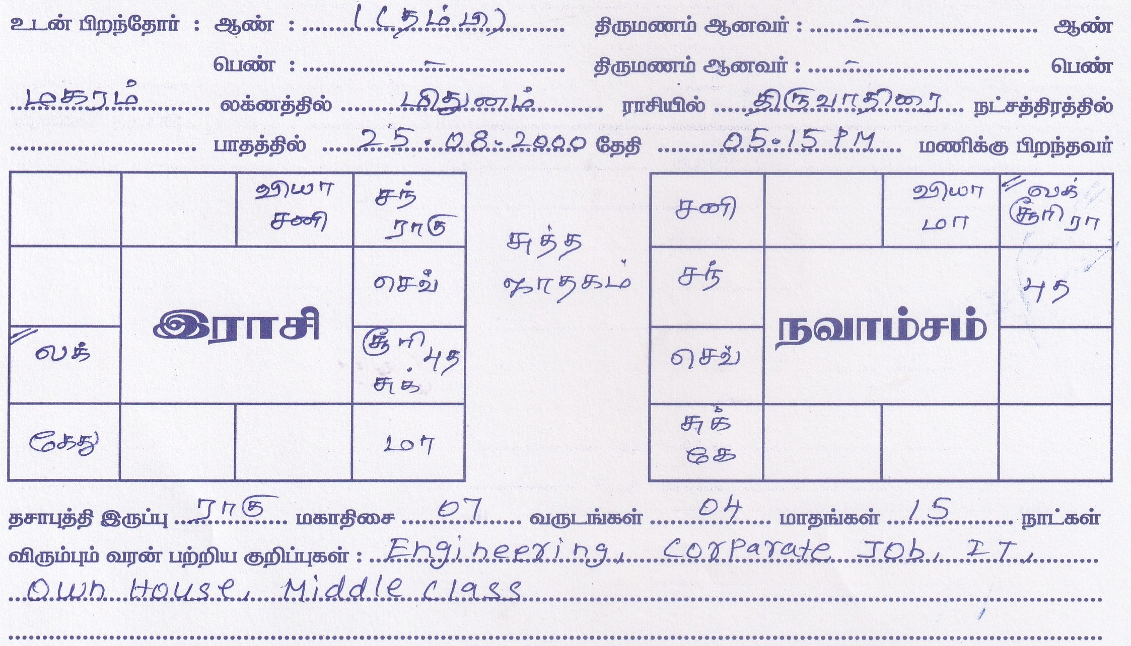 | Occupation | : ENGINEERING, CORPORATE JOB, IT, OWN HOUSE, GOOD FAMILY |